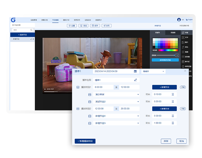 數(shù)字化信息發(fā)布管理系統(tǒng)GDSM-C區(qū)別于傳統(tǒng)信息發(fā)布方式,能有序高效地發(fā)布節(jié)目,管理系統(tǒng)簡(jiǎn)潔方便,可操性高??芍苯永煤笈_(tái)輕松進(jìn)行節(jié)目設(shè)計(jì),多樣化素材可供選擇,易于維護(hù)。