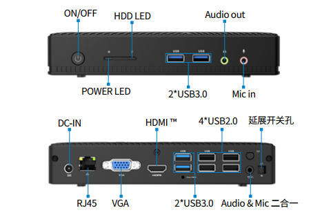 云終端Y-BOX P3主板上配備了 1個 M.2 插槽,支持兩種尺寸(2242和2280)的NVMe協(xié)議PCIe固態(tài)硬盤,支持PCIE3.0、PCIE4.0。機身共配置了3個USB3.2 Gen2接口和3 個 USB2.0接口,以及1個 USB3.2 Gen1 Type-C,2個USB3.2 Gen1接口,滿足用戶更多應(yīng)用拓展。