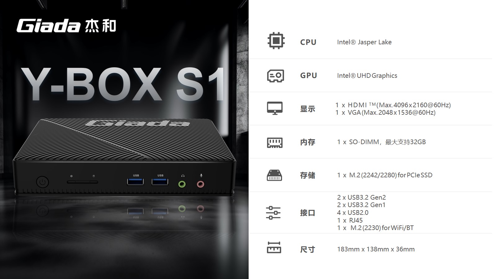 云終端Y-BOX S1采用Intel® Jasper Lake平臺,搭載瘦終端主流處理器Intel® Celeron®N5095,1 X SO-DIMM DDR4內(nèi)存插槽,支持HDMI顯示接口,可實現(xiàn)4K超高清內(nèi)容顯示,低功耗,提供高清流暢的桌面體驗。