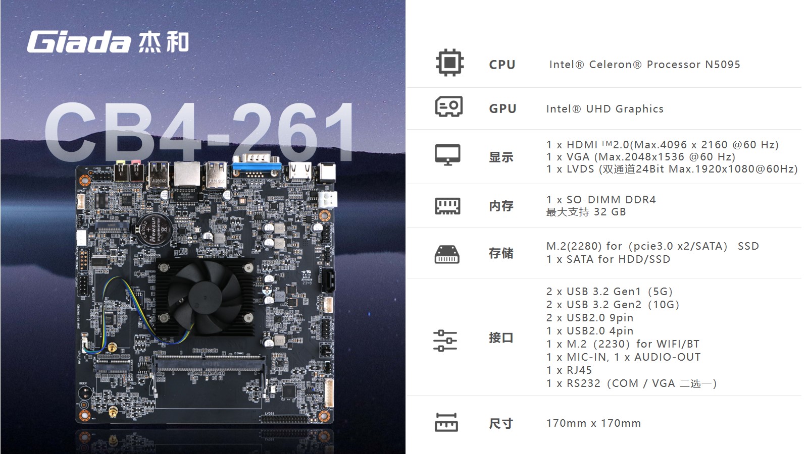 一款高性能的主板是終端機(jī)穩(wěn)定運(yùn)行的關(guān)鍵,基于Intel Jasper Lake平臺(tái)的N5095芯片,杰和科技推出了一體機(jī)專研主板CB4-261。