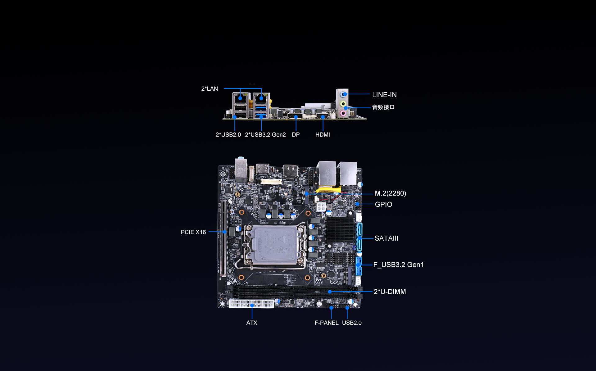 IB5-8131采用LGA1700插槽,采用Intel® B760 芯片組,支持Intel第12代至14代處理器,兼容Alder Lake-S、Raptor Lake-S和Raptor Lake Refresh 處理器,采用6+1相供電,即使在長時間高負載工作時也能維持穩(wěn)定運行,配備2 x U-DIMM DDR5內(nèi)存,最大支持96GB,頻率最高可達5600MHz,可靈活擴展NVMe SSD和2個SATA3.0存儲。