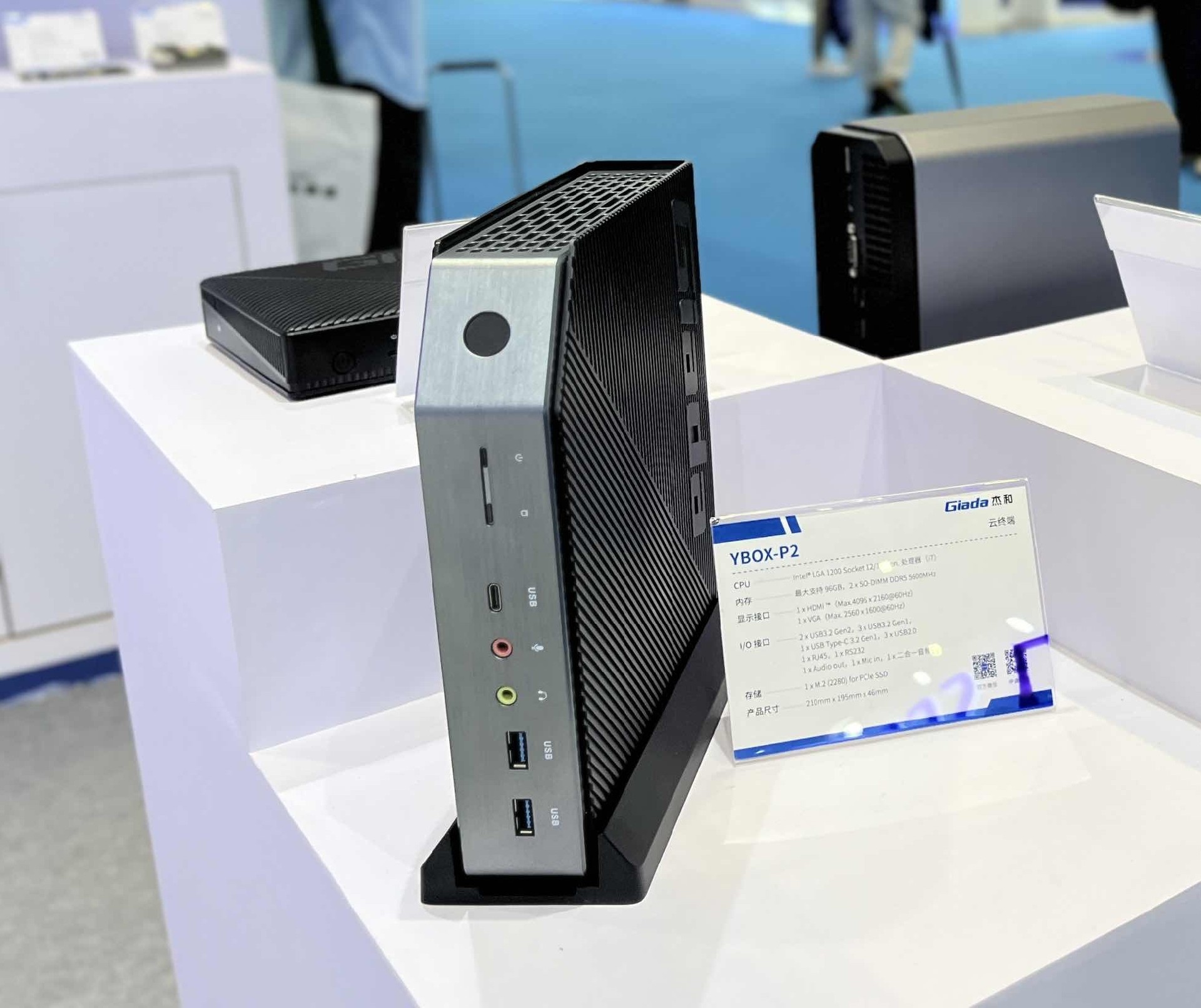 杰和科技云終端是云桌面解決方案的重要產(chǎn)品之一,此次我們針對各客戶群體提供不同架構(gòu)的云終端,帶來YBOX-P2、YBOX- S1、Y-BOX- S2和YBOX- SA1四款產(chǎn)品。其小巧的體積吸引了許多觀眾前來咨詢,最新推出的YBOX-P2以其工業(yè)感造型以及卓越性能脫穎而出,YBOX-P2支持Intel® LGA 1200插槽,兼容12/13代處理器,在內(nèi)存配置上同樣出色,最大可擴展至96GB,支持2 x SO-DIMM DDR5內(nèi)存插槽,頻率高達5600MHz,確保數(shù)據(jù)處理速度和多任務(wù)處理能力滿足高標準需求。