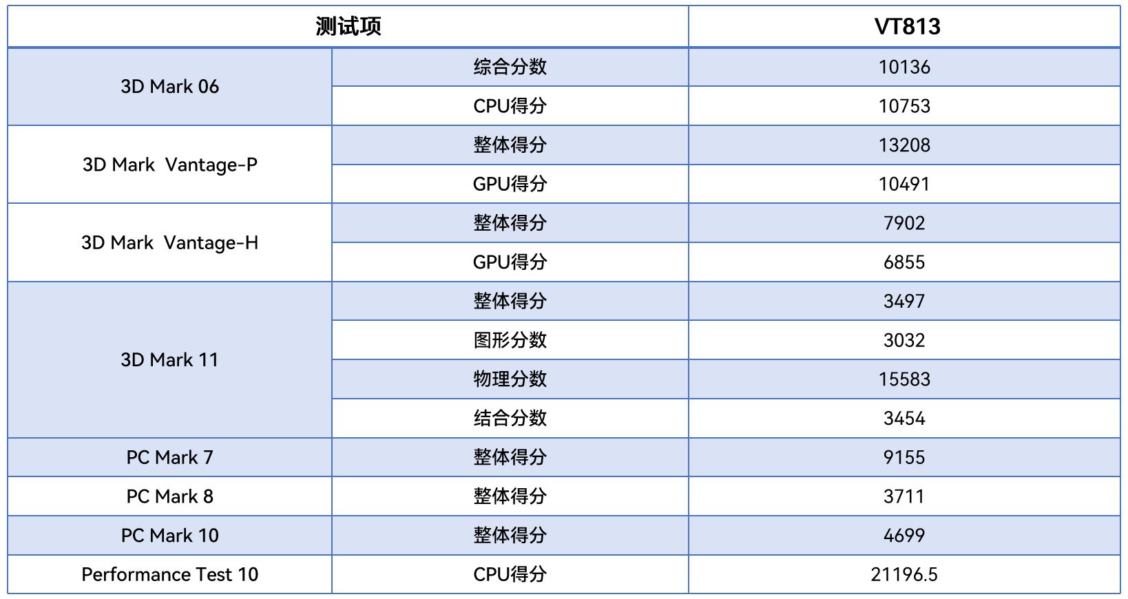 從不同測(cè)試軟件的跑分情況可以看出,VT813在圖形渲染、物理運(yùn)算及整機(jī)綜合性能等方面的整體表現(xiàn)優(yōu)異,下面我們將針對(duì)具體的幾項(xiàng)數(shù)據(jù)來(lái)進(jìn)行詳細(xì)分析解讀。