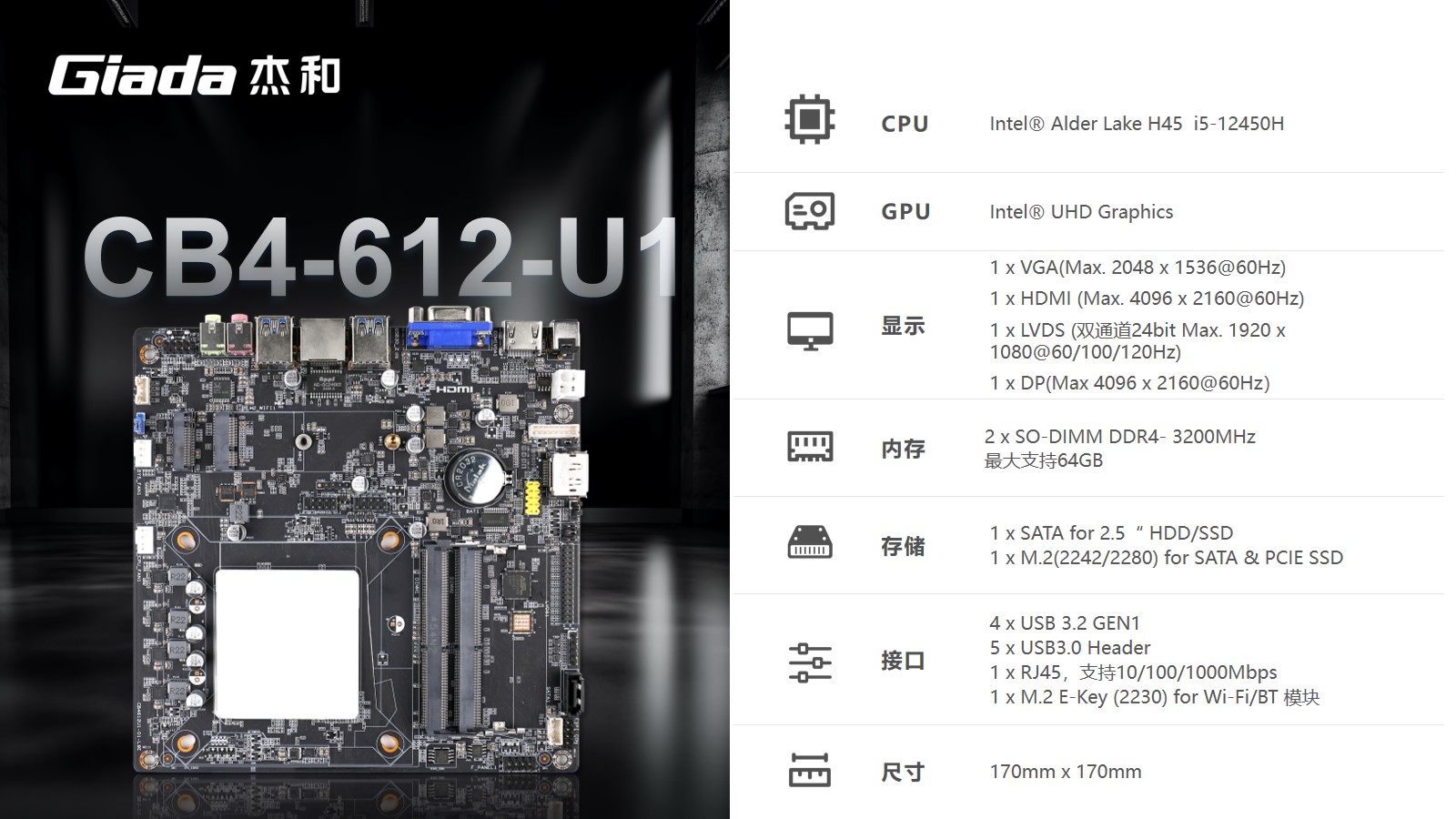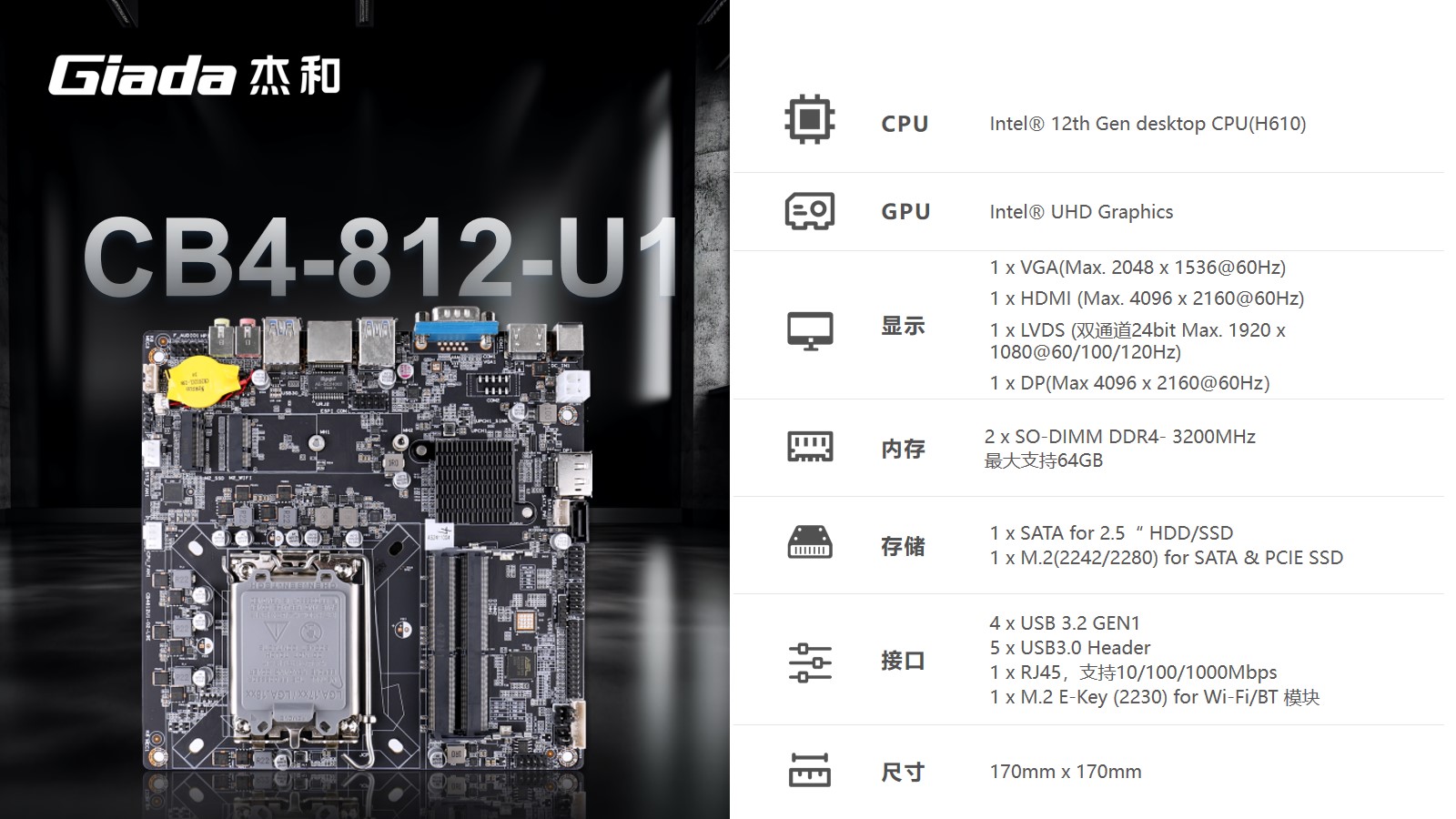 以最新的主板CB4-812-U1、CB4-612-U1為例,CB4-812-U1采用H610芯片組,支持Intel 酷睿12、13、14代處理器,CB4-612-U1則搭載Intel i5-12450H處理器,都支持高達(dá)120Hz的高刷新率。