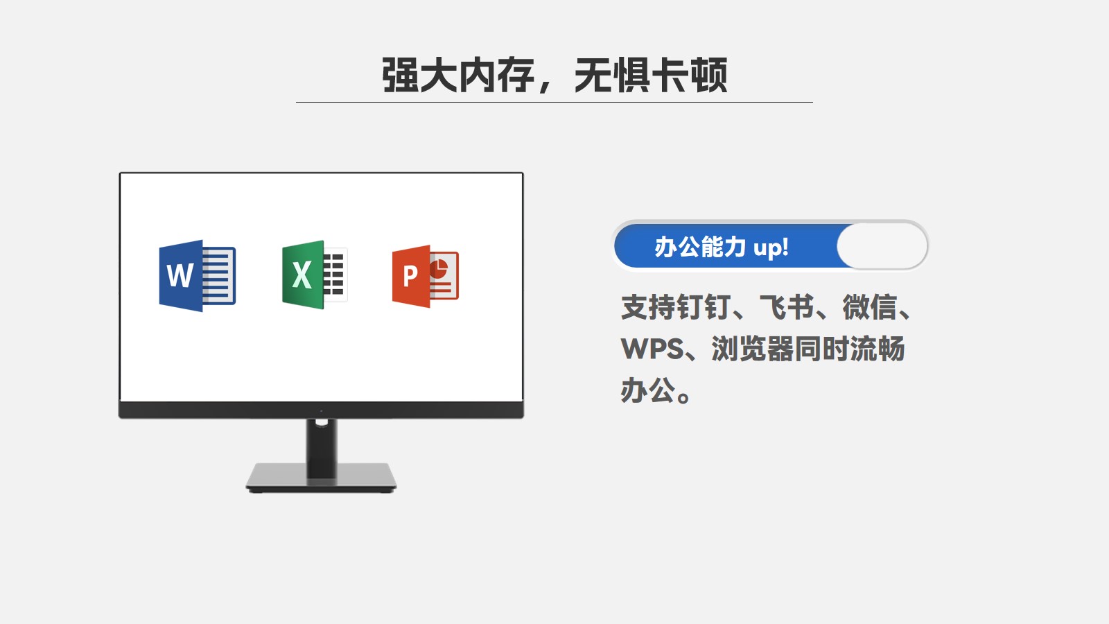 雙通道SO-DIMM DDR4-3200MHz架構(gòu),最大支持64GB內(nèi)存擴(kuò)容,滿足多任務(wù)處理需求,可流暢打開(kāi)各網(wǎng)頁(yè)、Excel表格、釘釘視頻會(huì)議等應(yīng)用,徹底打破了"多開(kāi)必卡"的辦公魔咒。