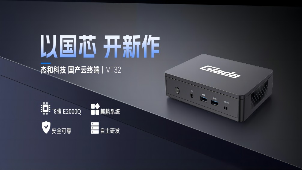 此前杰和科技已推出搭載飛騰E2000Q芯片的云終端VT32,并與麒麟V10操作系統(tǒng)深度適配,提供安全可信的解決方案。