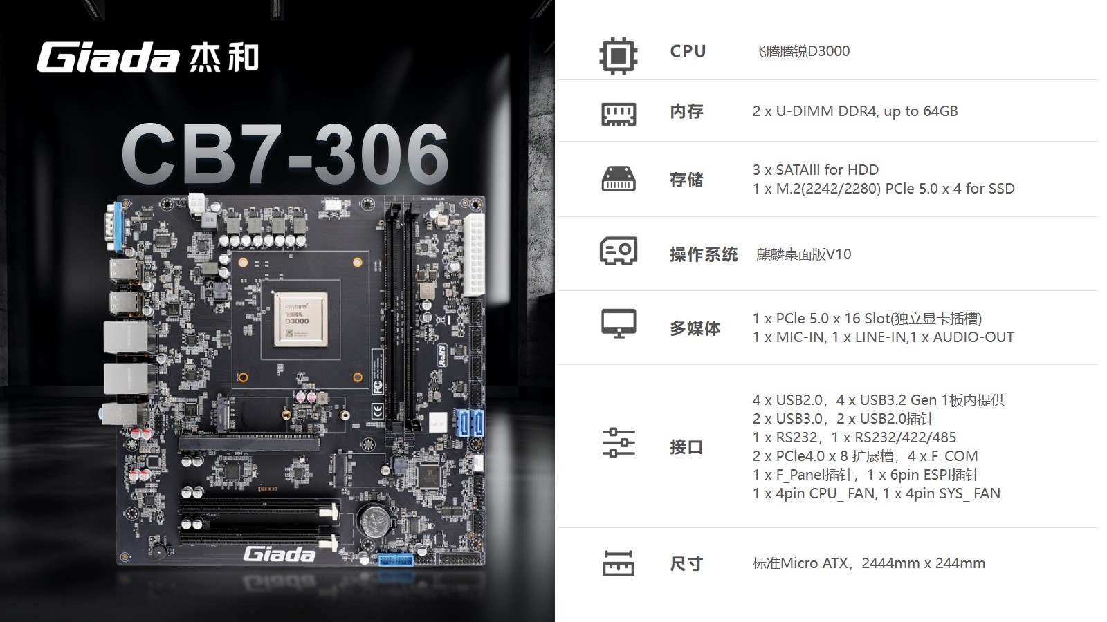 杰和科技積極響應(yīng)國產(chǎn)化市場(chǎng)需求,持續(xù)深化與飛騰、兆芯等國內(nèi)芯片領(lǐng)軍企業(yè)的合作,將持續(xù)推出基于國產(chǎn)芯片平臺(tái)的計(jì)算機(jī)主板:CB7-306、CB7-501