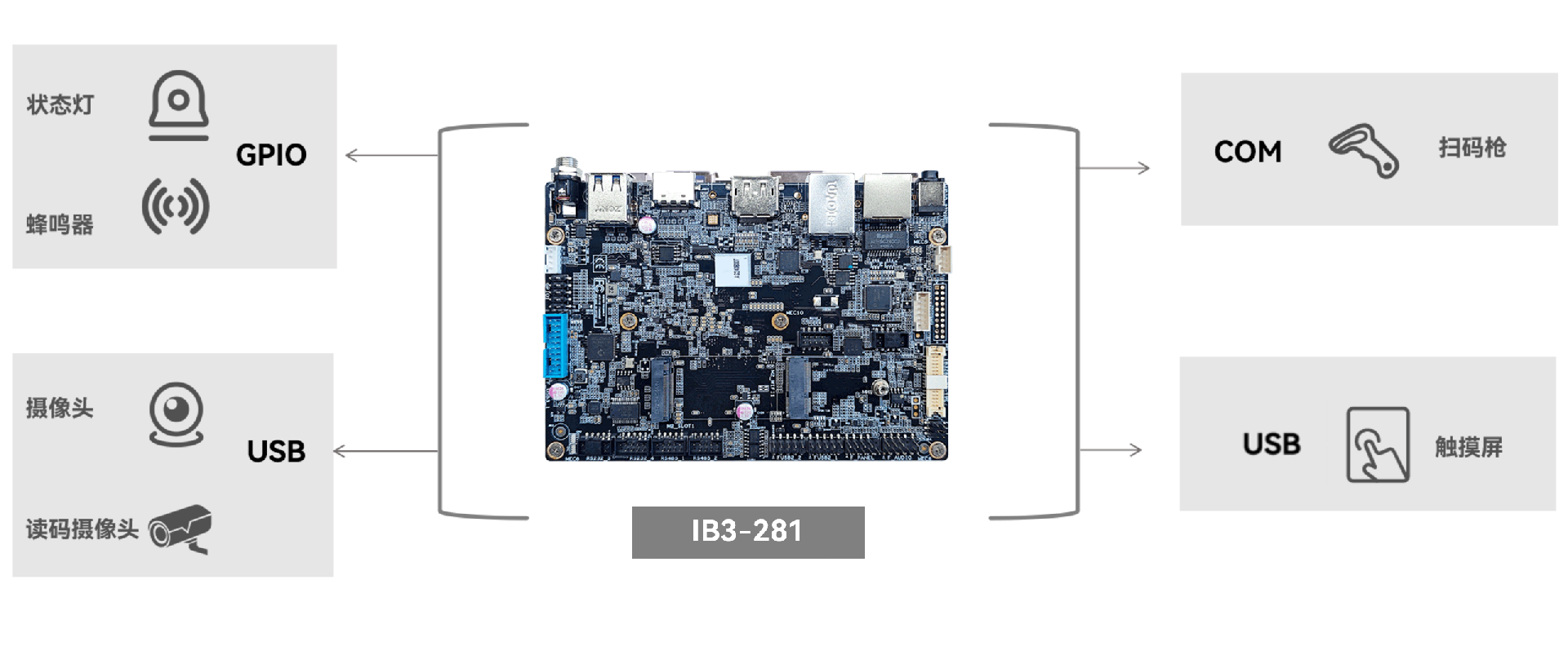以典型的分揀工作站為例,其流程涵蓋掃描稱重、自動分揀與末端劃包等多個環(huán)節(jié)。杰和IB3-281作為系統(tǒng)的大腦,通過連接掃碼槍、攝像頭、稱重器等設(shè)備,高效協(xié)調(diào)數(shù)據(jù)采集與指令執(zhí)行,顯著減少人工干預(yù),降低分揀差錯率。