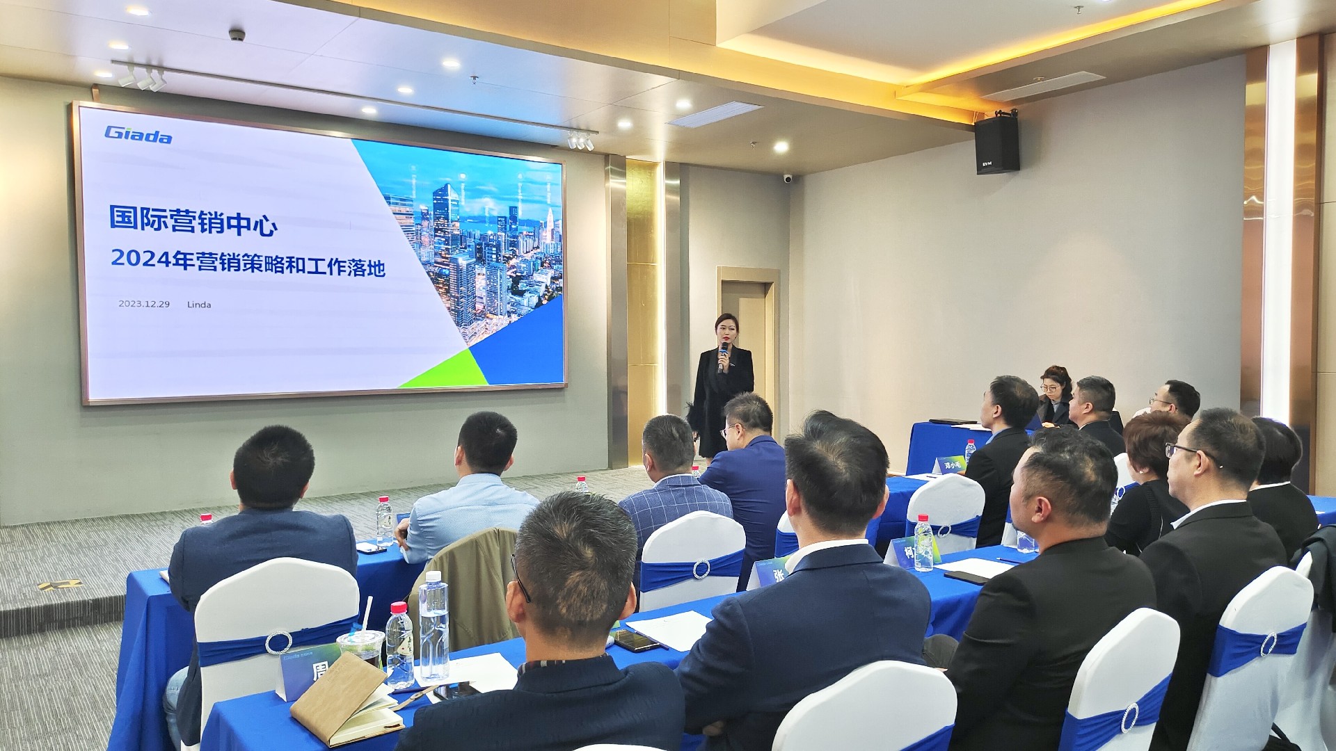 會議開始后,兩位國際/國內(nèi)營銷中心負(fù)責(zé)人首先對2023年度經(jīng)營工作作總結(jié)報告,并著重介紹2024年度銷售目標(biāo)與重點工作。