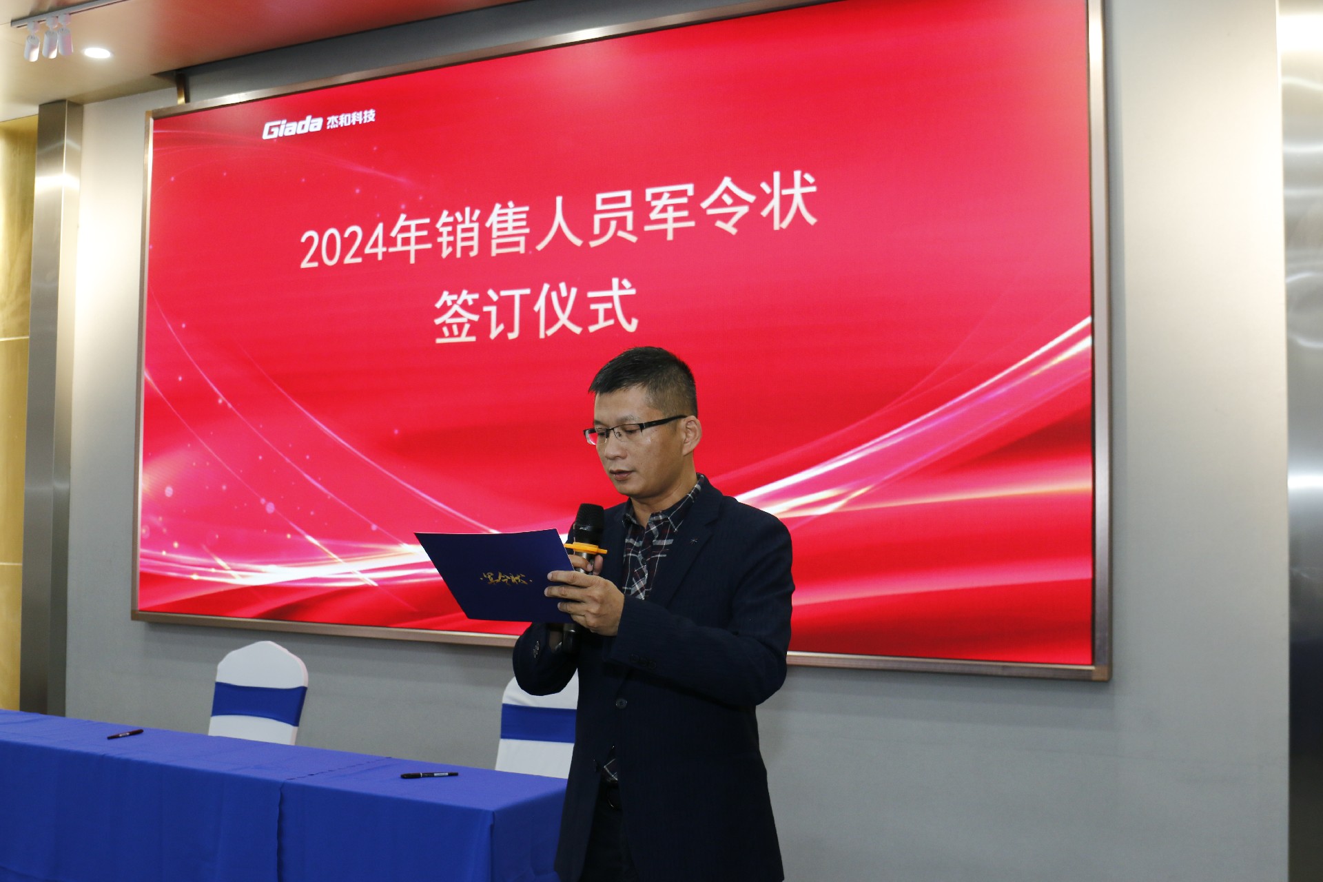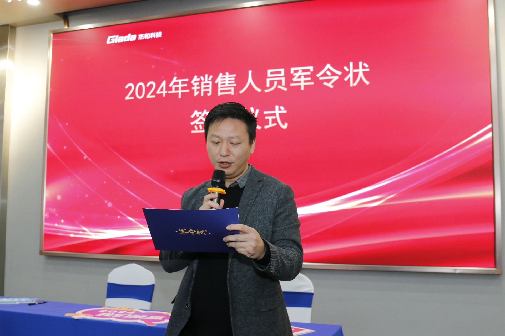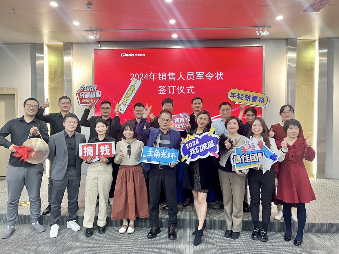 2024公司年度戰(zhàn)略目標(biāo)確立,言出必行,使命必達(dá),國際/國內(nèi)銷售團(tuán)隊為了共同的目標(biāo)開始軍令狀簽約儀式。一紙軍令狀,是杰和科技與銷售人員的雙向承諾,是壓力,更是動力。是不破樓蘭終不還的決心,更是春風(fēng)得意馬蹄疾,一日看盡長安花的期待。