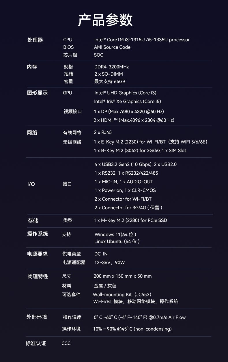 1、杰和AE613采用密封緊湊設計,緊湊設計可以使設備更易于安裝在交通場景中的有限空間內,適用于車載、道路監(jiān)控、交通信號控制等應用場景,該設計有利于導熱更有利于散熱,并且機器功耗只有15w,能夠降低對電力資源的需求,有利于節(jié)能減排,符合綠色環(huán)保的發(fā)展理念,并且較低的功耗意味著可以延長電池的使用時間,提高設備的續(xù)航能力;