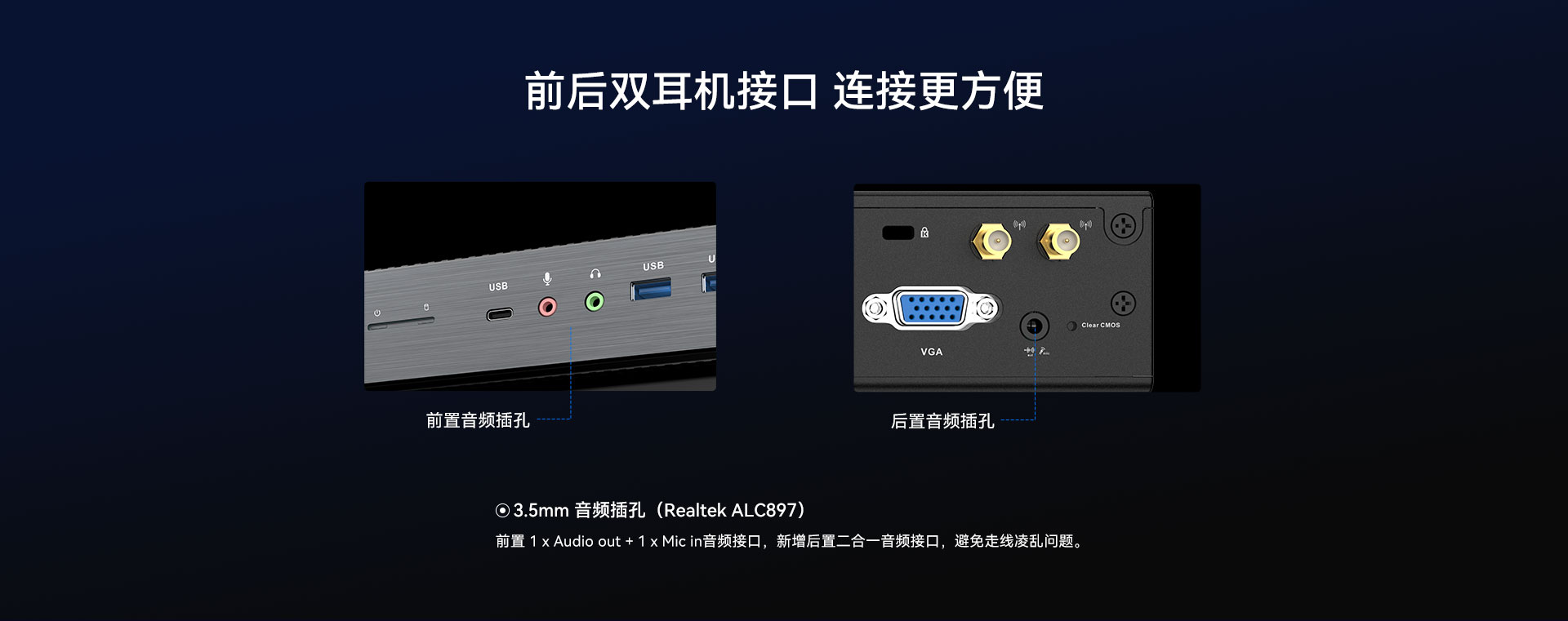 | I/O | 接口 | 3 x USB3.2 Gen2 ,2 x USB3.2 Gen1, 3 x USB2.0,1 x Type-C 1 x RS232 |