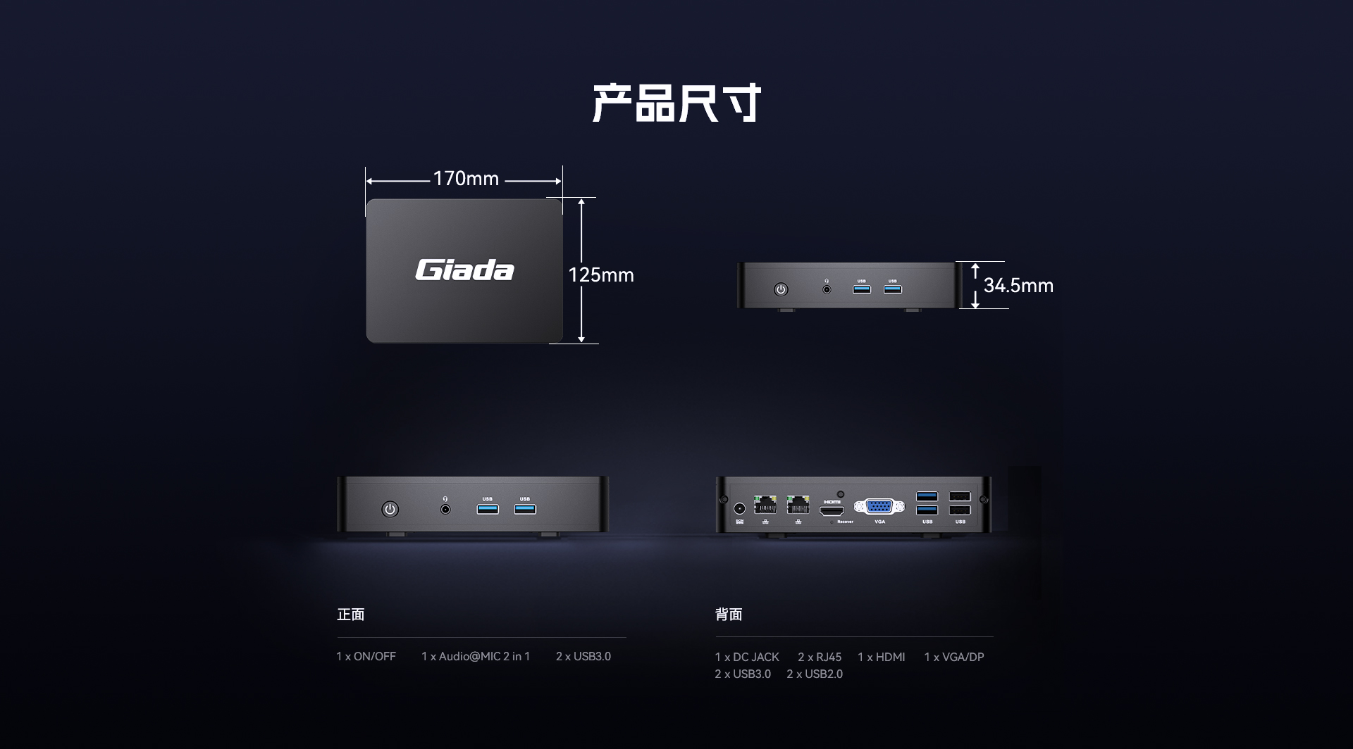 | I/O | 接口 | 4 x USB3.2 Gen1,2xUSB2.0 1 x Audio&MIC 2IN1 板載WIFI/BT模塊,支持WIFI5雙頻 |