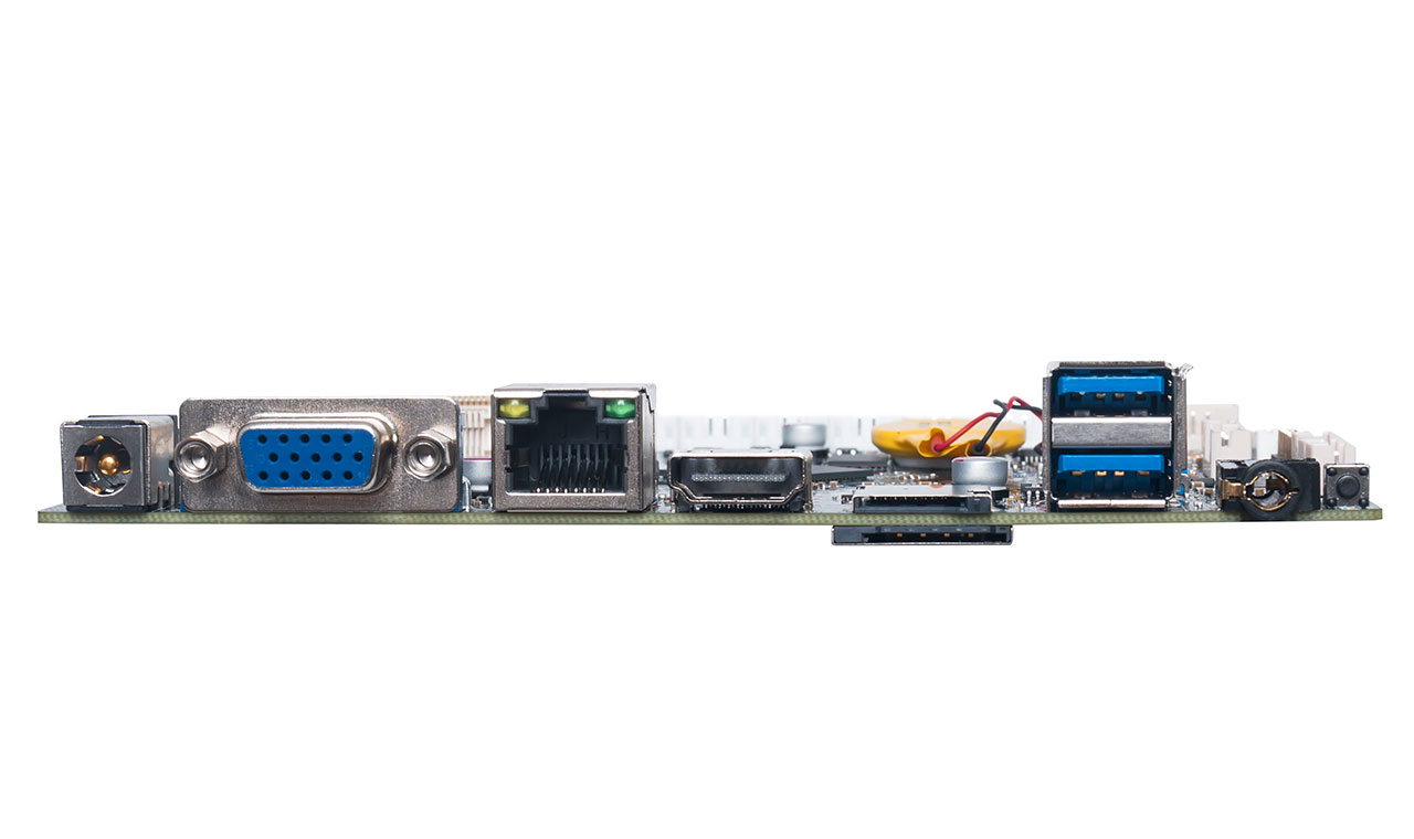 | 外部I/O | 接口 | 1 x HDMITM(Max.3840x2160@60Hz) 1 x VGA(Max.1920x1080@60Hz) 1 x USB3.2Gen1,1 x USB3.2Gen1 OTG 1 x RJ45 1 x 全高Mini-PCIe擴展3G/4G 1 xSIM卡槽,板載WIFI/BT 1 x 2-IN-1 Headset (AUDIO-OUT & MIC-IN) |